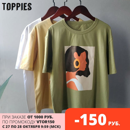 Toppies 2020 summer character t-shirts fashion girls tops short sleeve printing t-shirts Korean women clothes 95% cotton